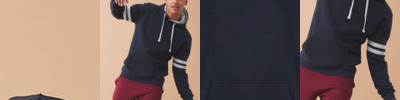 Heavyweight hoodie. Striped detailing on sleeve. Regular fit. Double fabric hood with single Jersey contrast inner. Twin-needle stitching detail. Set-in sleeves. Kangaroo pouch pocket. 2 x 1 ribbed cuffs and hem. Brushed inner fleece. Soft-cotton faced fabric creates ideal printing surface. Simple tear-out label makes it perfect for rebranding. WRAP certified. SEDEX certified. Vegan certified.