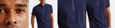 Classic fit polo. Zip placket. High polish silver zip. Short sleeves. Side vents. Jacquard knit textured collar and cuffs. Machine washable. Product contains no branded neck label. Removable Kimble or looped garment tags. Inner seam label holds important product information on one label with a second label containing brand information which can be cut-away. Please note old stock may contain a fixed branded label
