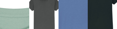 Set-in sleeve. 1x1 rib at neck collar. Inside back neck tape in self-fabric. Sleeve hem and bottom hem with narrow double topstitch. Kids, medium fit, short sleeve, round-neck. 100% organic ringspun combed cotton. Single Jersey. Fabric washed.