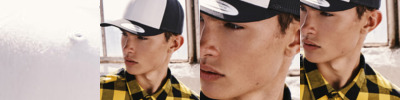 Retro trucker melange cap. Flexfit technology. Trucker mesh and a front made of very soft, slightly brushed fabric. Beautiful melange look.