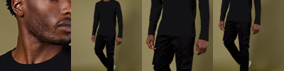 1x1 rib neck. Self-fabric beck neck and shoulder tape. Top stitched front neck trim. Twin-needle stitched hem and cuffs. Kustom Kit® tear out back neck label.