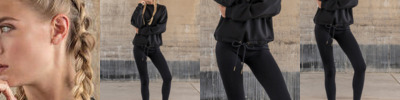 Neutral size label without branding, neck print possible, rip cuff at the hem, side pockets above hem, bomber jacket-style.