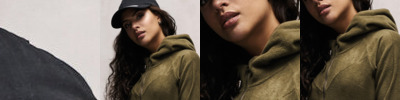 Raglan sleeve. Double-layered hood in self-fabric. Round drawcords in matching body colour with metal tipping. Metal eyelets. Inside herringbone back neck tape. Self-fabric half-moon at back neck. Slanted side seams with pockets. 1x1 rib at sleeve hem and bottom hem. Flatlock top-stitch on all seams.