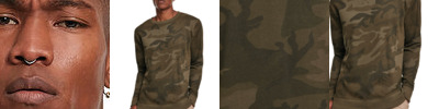 Set-in sleeves, short cut, round neck, rib at neck, twin seam at cuffs and hem.