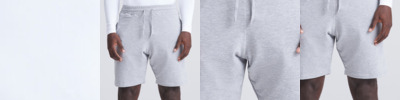 Sports jog short made from polyester/ cotton/elastane blended stretch fabric. Elasticated waistband with drawcords for fit and pockets at side seams.