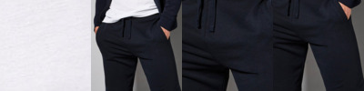 1x1 rib elasticated waistband with flatlock edge. Self-colour flat cord tie. Brushed metal eyelets supporting waist tie. Two side pockets with jersey pocket bags. Back patch pocket to right side as worn. Twin-needle stitched hem. Kustom Kit® tear out label to waist. WRAP certified. SEDEX certified. Oeko-Tex certified. BSCI certified.