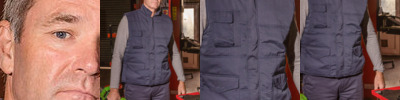 Trendy down bodywarmer. Full-zip opening with zip puller in contrasted colour. 2 outer pockets with zip and zip pullers. 1 inner wallet pocket. Open hem and longer back than front. Large back area without stitching. Invisible zipper opening in the middle of the back for easy decoration