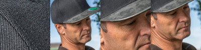 Recycled PU peak. Tear away label. CORE value product. 6 panel. Stitched eyelets. Stiffened front panels. Snapback adjuster. Contrast PU pearl fabric flat peak.