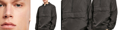 Lightweight material, front zipper and chest pocket, hood and waist with elastic, adjustable drawstring, sleeve openings with elastic band.